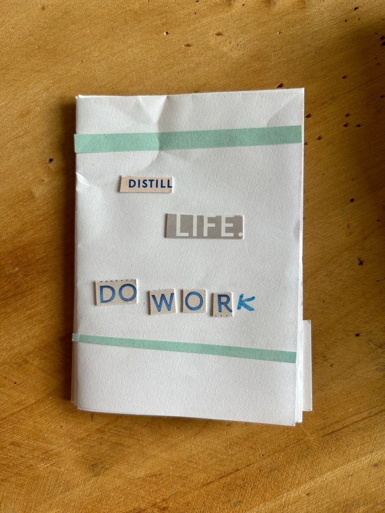These slogans above were written as a result of an experience or situation I had and just felt that it needed saying, “Pick up your dog’s poo”, I think most people can relate to! “Distill Life Do Work” came up while making the zine that it’s written on, out of cut outs from other publications, one of which I think was marketing materials of Downpour Gin. This slogan is intentionally ambiguous around the idea that life should be distilled, concentrated, brewed and bottled against the doing of work or that doing work is the way to distill life–I think the reader should make of it as they will. “Art Galleries are a Sanctum” was written in the café of the Whitworth Gallery in Manchester. I had spent a frenetic time, travelling to get there from Scotland. I had spent a further frenetic morning chatting with zine fair stall holders and browsing through so many different publications. Then I wandered around the gallery spaces, soaked in their relative quite atmosphere and pondered over some of the artworks on display. “Art Galleries are a Sanctum”, both conveyed how I felt in that moment but also will have connotations with the idea of the sacred space. Whether you agree or not, I will leave that to you, but nonetheless given the financial environment just now and the cost of living crisis the importance of an art gallery and the value that it provides for communities in a host of ways can not be taken for granted.