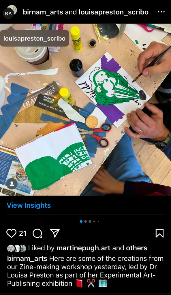 After the talk I managed to get some lunch in the café which was full to bursting. The zine workshop was scheduled to start at 1.30pm and run until 3.30pm. It was fully booked. Attending were some friends of mine, my colleague from Stirling University, two people from Inverness and someone from Auchterarder who was very interested in working with young people with zines and wanted to give it a try. The artist in residence was also at the workshop in a shadowing capacity.