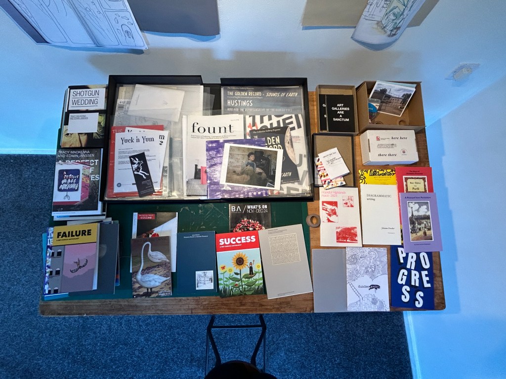 However, I ploughed on and towards the end of the week I had an interview with Helen O’Brian, who was most informative about strategies that she’s involved in for sustainability in communities regarding youth support and workshops for helping young people to see how they can progress with a career in the arts. Helen also spoke about the artisan village which she hopes she can help to provide a common place for makers to work in the same space on with tools they would be needing and would normally have to travel to Edinburgh Sculpture Workshop for example. When I went home later that day I made some zines with Caelan, we had lots of fun and Caelan really enjoyed making them.