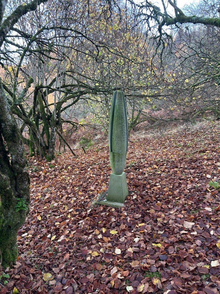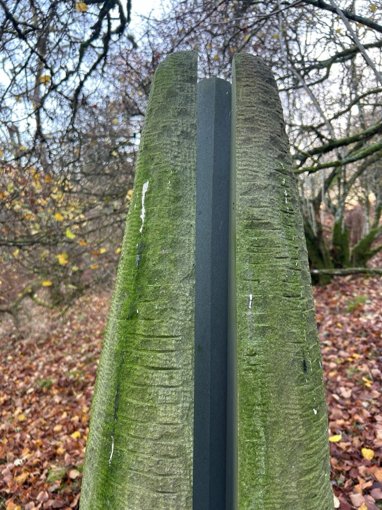 The Poetry Path created such a beautiful experience for us that we will remember it for a long time. The encounters with each poem were enriched by the weather for us that day, and our consequent jubilant mood that the discoveries along the path created for us. These ‘texts’ the words and the sculptural works published in this way are at once embodied and completed by their situation in the landscape in which they are encountered. I felt that the artworks were waiting for us to be discovered and enlivened by our reading of them in ways which far outreach the experience of a reading from the pages of a book.